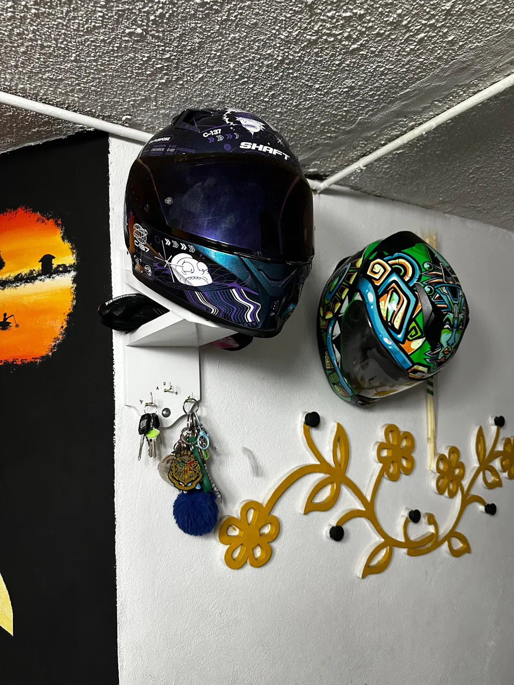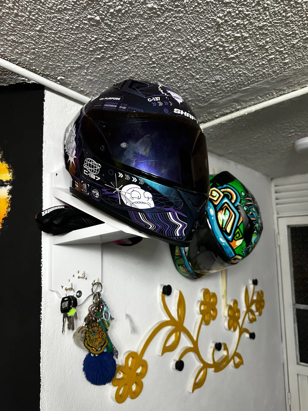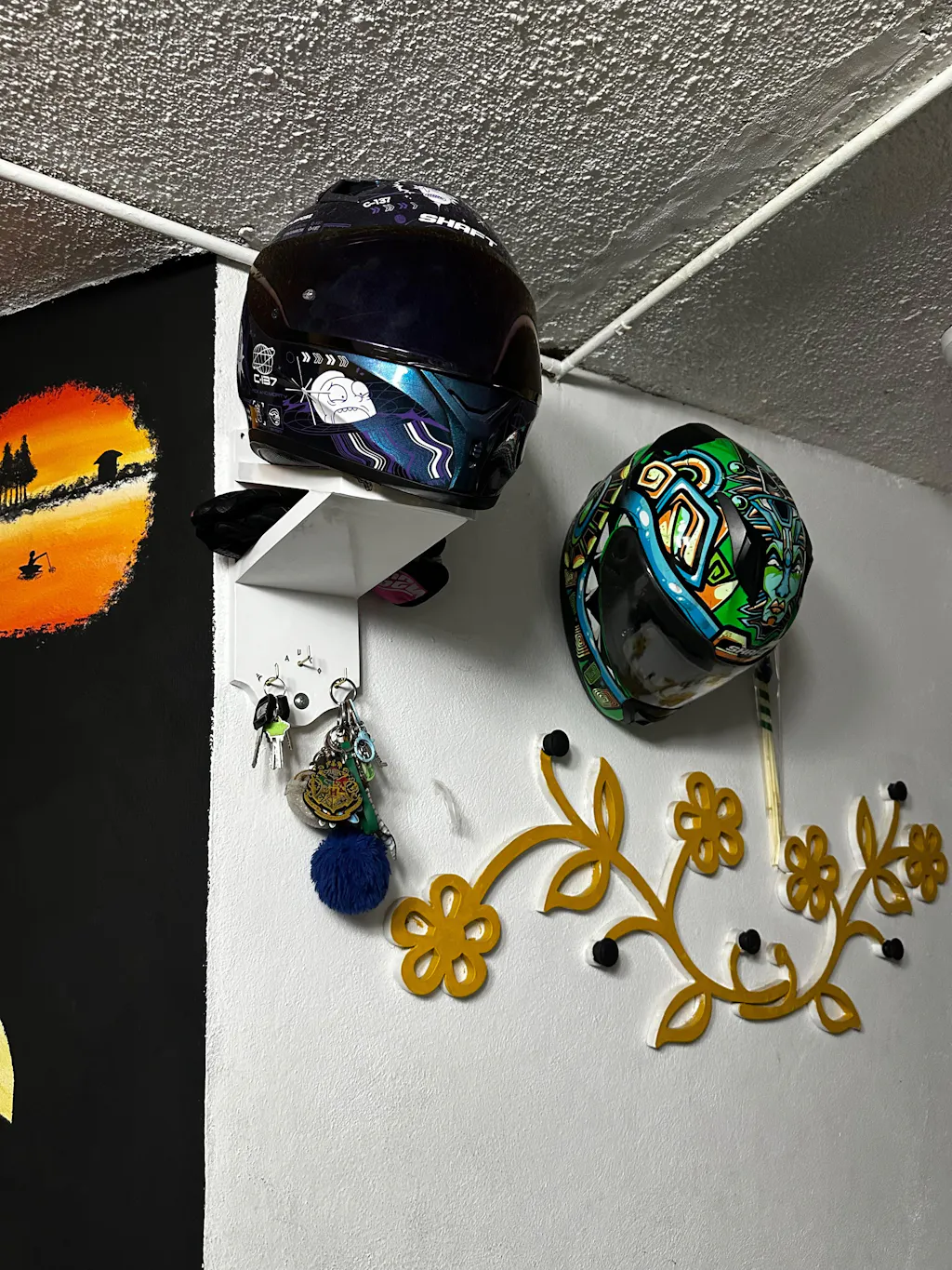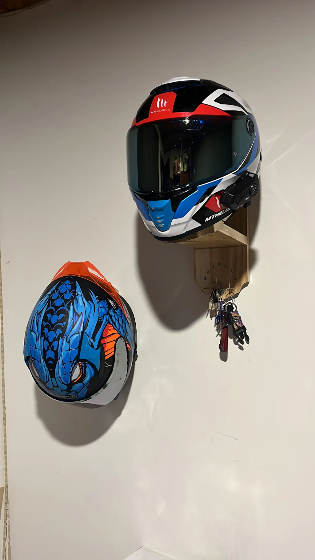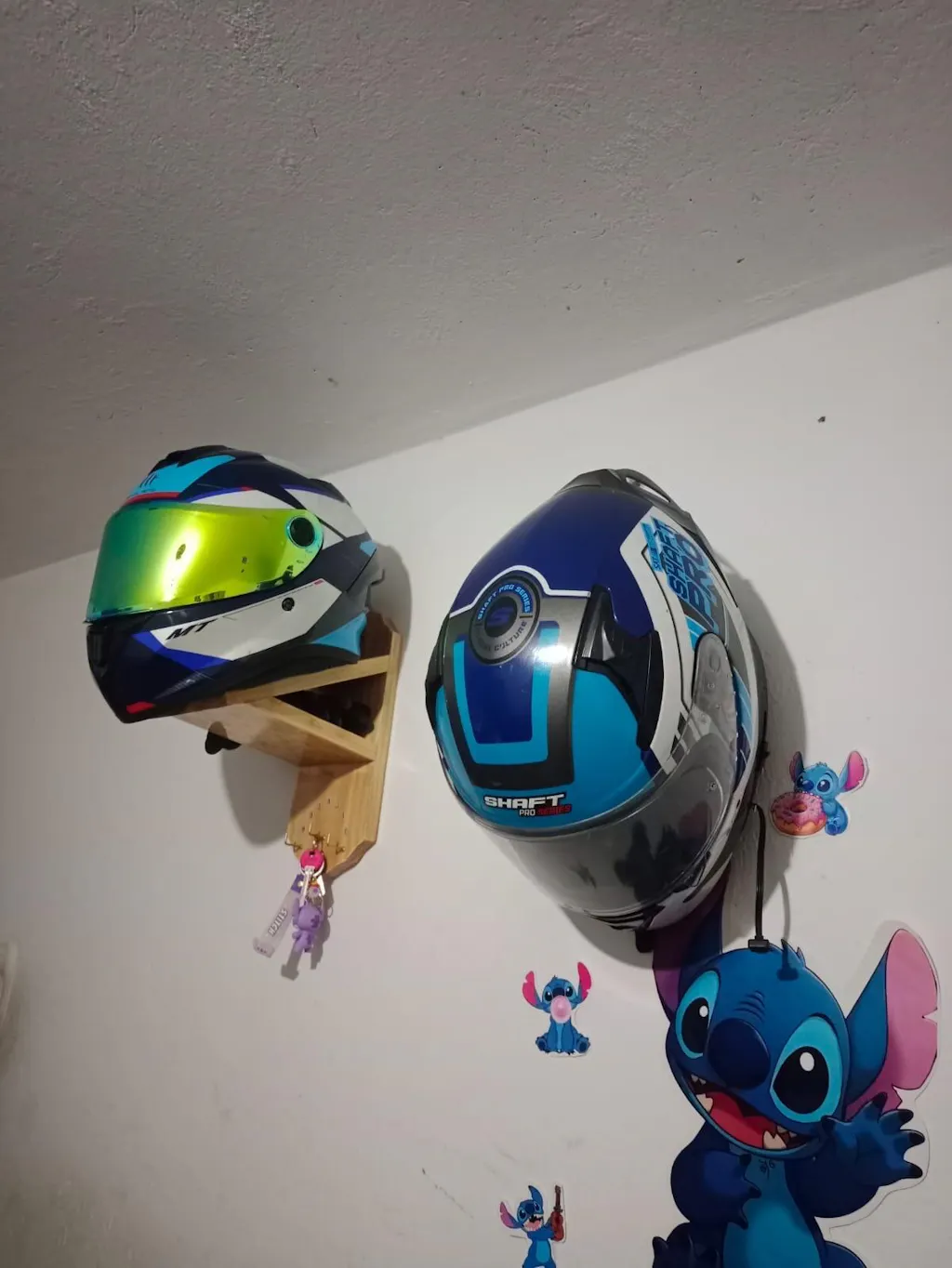 ✅ 2 soportes amplios para colgar cómodamente dos cascos (cualquier talla y modelo).
